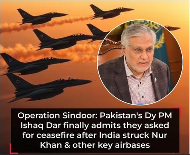 गुरुवार (19 जून, 2025) को, पाकिस्तानी उप प्रधान मंत्री और विदेश मंत्री इशाक डार ने एक टेलीविज़न साक्षात्कार के दौरान एक स्पष्ट रूप से स्वीकारते हुए उन्होंने खुलासा किया कि भारत ने ऑपरेशन सिंदूर में उनके दो बड़े एयरबेस, नूर खान और शोरकोट एयरबेस पर हमला किया था। साथ ही डार ने जियो न्यूज पर यह भी बताया कि 6-7 मई की रात को पाकिस्तान जवाबी हमला करने की तैयारी कर रहा था, तभी भारत ने दोबारा स्ट्राइक कर दी और नूर खान-शोरकोट एयरबेस को निशाना बनाया।